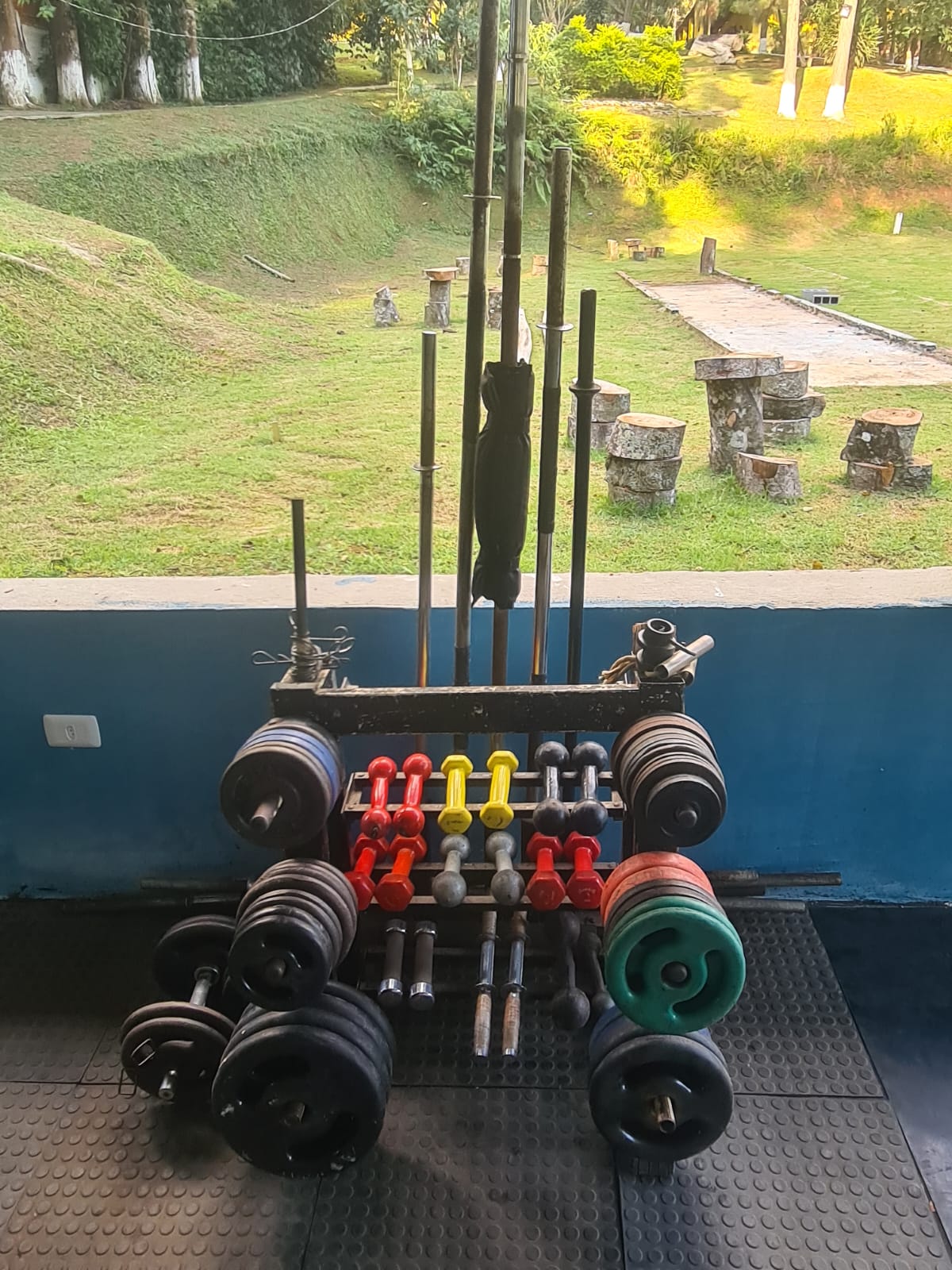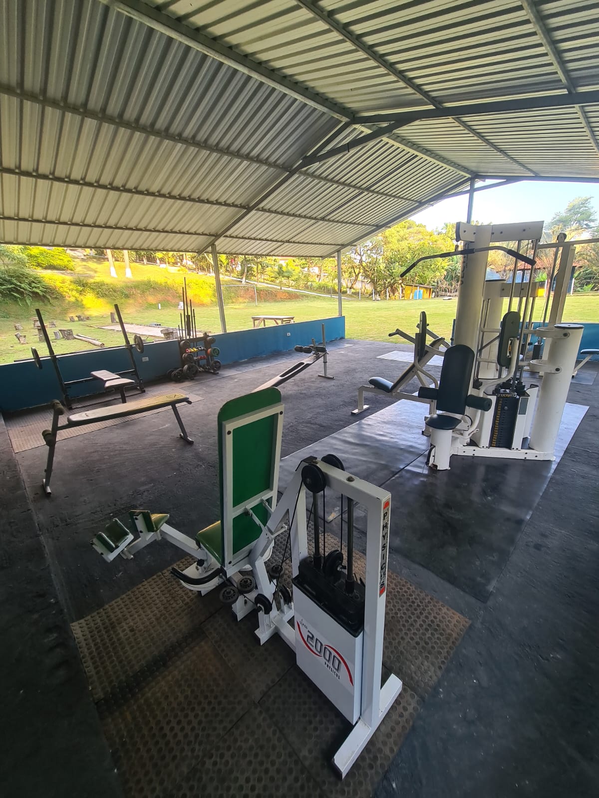 Ambientes equipados com piscina, academia, campo, quadra, refeitório e uma área ampla.